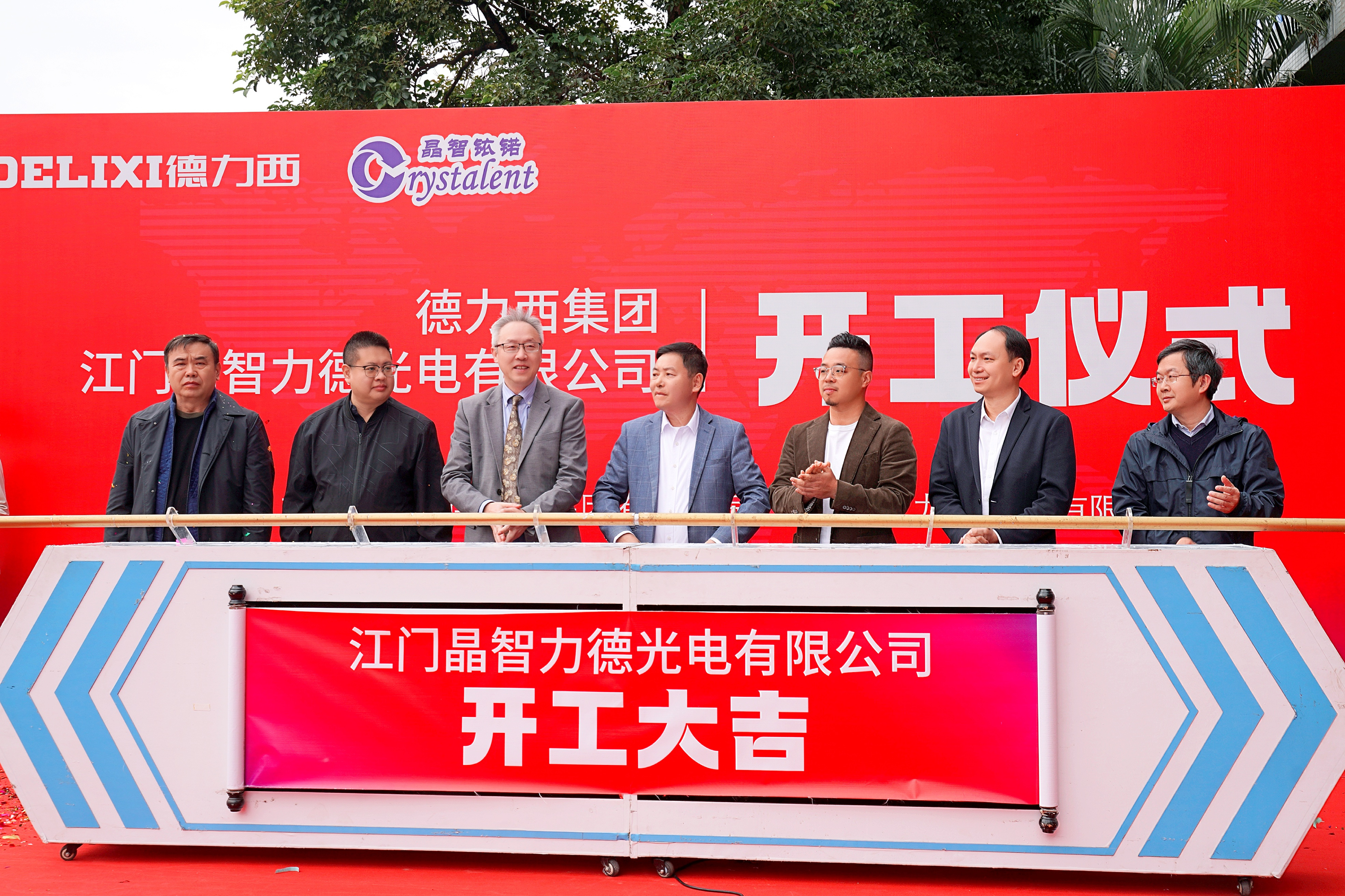 行业领先的高透光防窥膜、高清投影幕布、高性能增亮膜产线落地江门——11月20日上午,由浙江知名企业德力西集团投资的光学膜材项目在江门市江海区德力光电产业园正式开工,江门市江海区副区长邓群标等当地领导,德力西集团总裁胡煜鐄、CFO胡庆生等高管出席开工仪式。