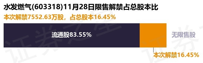 证券之星消息,根据市场公开信息整理,水发燃气(603318)于11月28日将有7552.63万股限售股份解禁,为公司定向增发机构配售股份,占公司总股本16.45%。(本次数据根据历史公告整理得出,实际情况以上市公司最新公告为准)本次解禁后十大配资公司排名,公司已无限售股份。具体如下图所示: